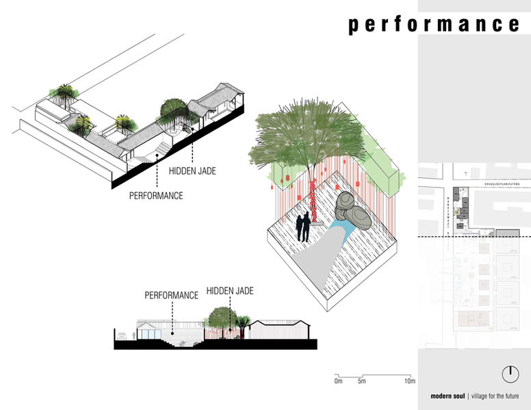 In this studio, we were tasked with looking for a plot of land in the location given and designing the land to connect with the area. The location was Nanlouguxiang, an area that has a commercial road in the middle surrounded by residential hutongs. Our site was located within the hutongs. We wanted to focus on designing the site and space that would encompass modernity through, community self-growth, cultural preservation, and sustainable development.